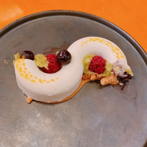 柑橘の香りとタコの食感が特徴的なお皿。 こちらのお店は、柑橘とナッツ類の使い方がとても素晴らしいです。 tabelog.com
